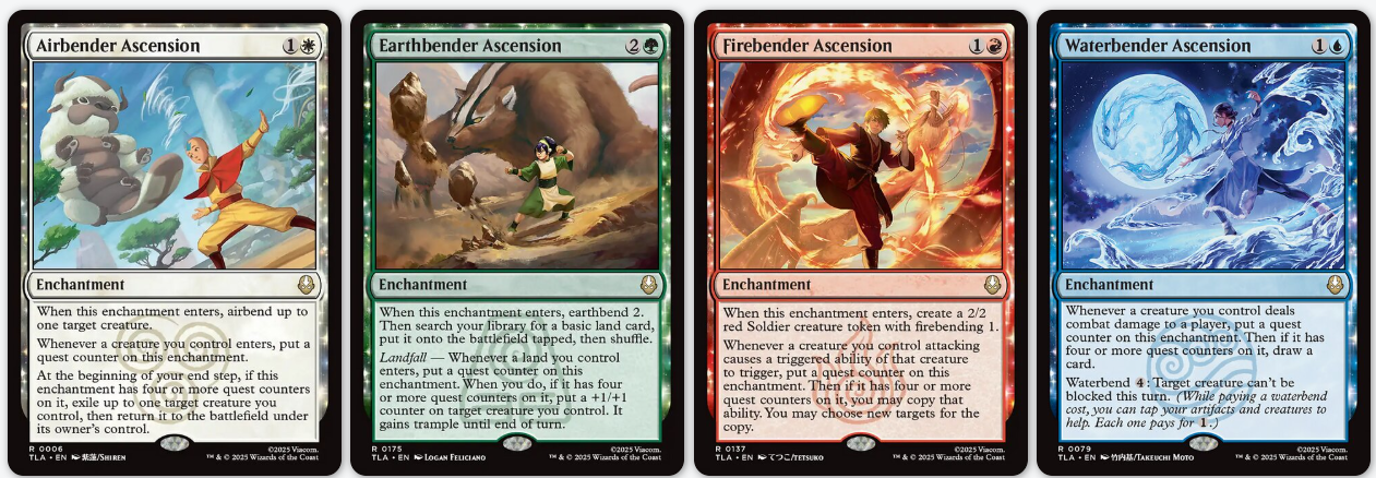 Očarování, které mají ve jméně "ascension" jsme viděli poprvé v Zendikaru. Zde jej dostává každé z umění ovládání živlů, a stejně jako své předlohy fungují s žetony questů.