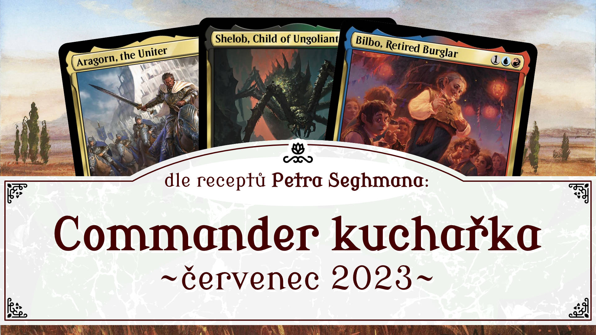 Za okny do nás pere slunko všecku energii, kterou si po dobu letních měsíců nastřádalo, a my s potem na čele přemýšlíme, co v těhle pařadích měsícech přinést na stůl. Těžké masité pokrmy a smažené balíky jsou trochu moc – fritování a pašíkům se tedy vyhneme. Máme však kliku – naši dodavatelé z USA, Wizards of the Coast, nám poskytli spoustu nových surovin v podobě legendami našlapané edice ze série Universes Beyond, sice Lord of the Rings: Tales from Middle Earth. Od jednoduchých legend v jedné barvě (Arwen, Weaver of Hope), přes spoustu dvoubarevných kusů (kam patří třeba noví tribal generálové pro human, elf a goblin/ork creature typy), až po pětibarevné generály v čele s vypravěčem Tom Bombadil. Přiznám se, že jsem skoro stavěl Shagrat, Loot Bearer, který je naprosto skvělý generál pro Rakdos "hammer-time" equipment – archetyp, který jsme tu ještě neměli.