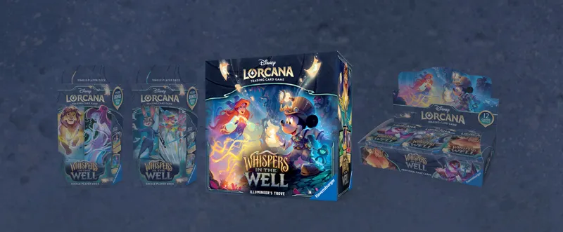 Whispers in the Well je desátý set Disney Lorcany. Dějově zavádí hráče do Inkwell Caverns, podzemních jeskyní plných potrhaných stránek lorebooku a tajemných hlasů z dávno zapomenuté studny. Celý set má výrazně detektivní, místy až hororové ladění, což se promítá do mechanik i do výběru franšíz, například Gargoyles, The Black Cauldron (Černý kotel), Legend of Sleepy Hollow (Legenda o Ospalé díře)