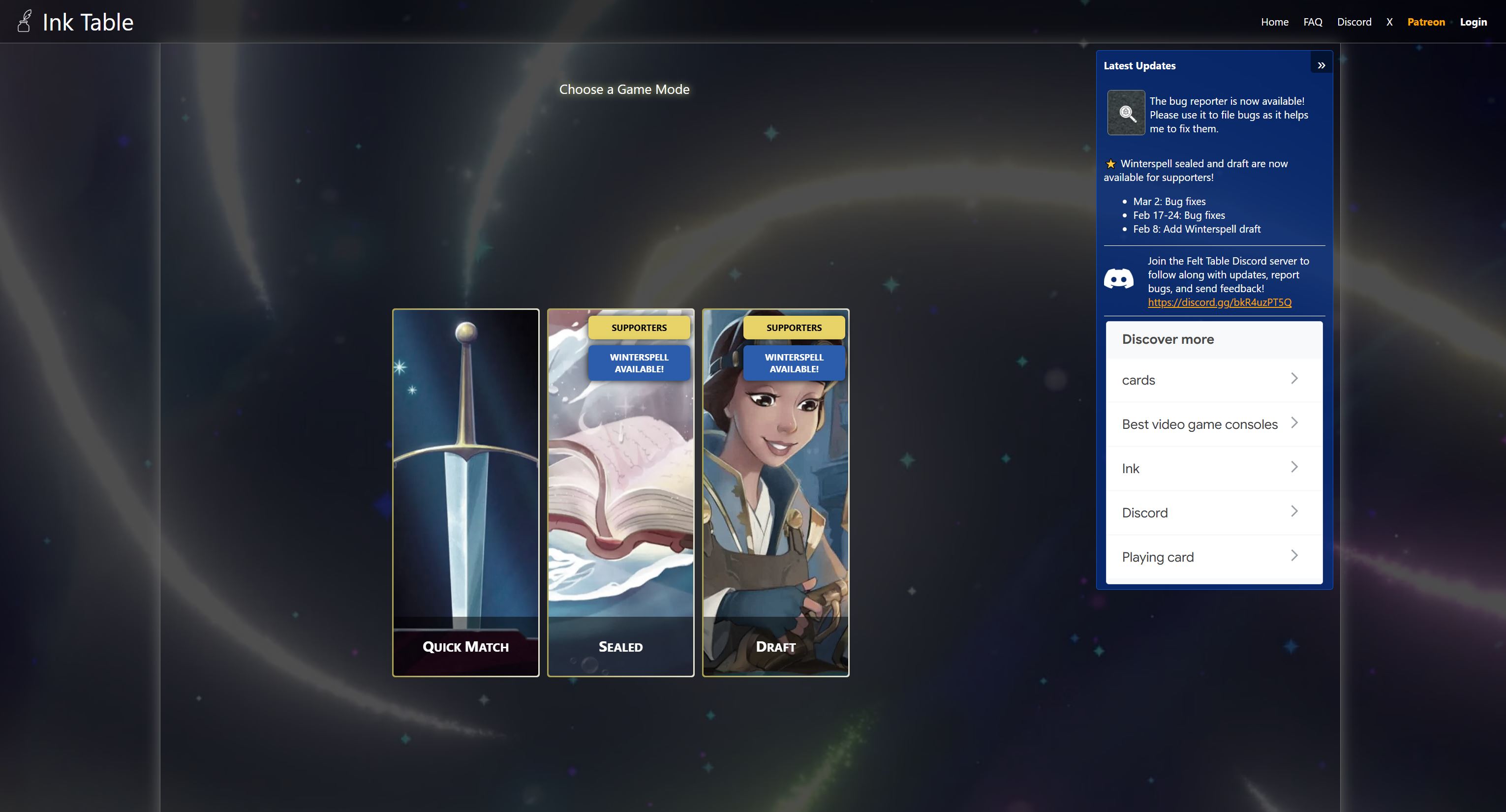 Inktable.net je bezplatný simulátor, který běží přímo v prohlížeči na počítači i mobilu. Jeho hlavní výhodou je trénink proti umělé inteligenci (botovi). Ideální nástroj, když chcete otestovat nové balíčky a strategie v klidu a bez stresu z živého soupeře.