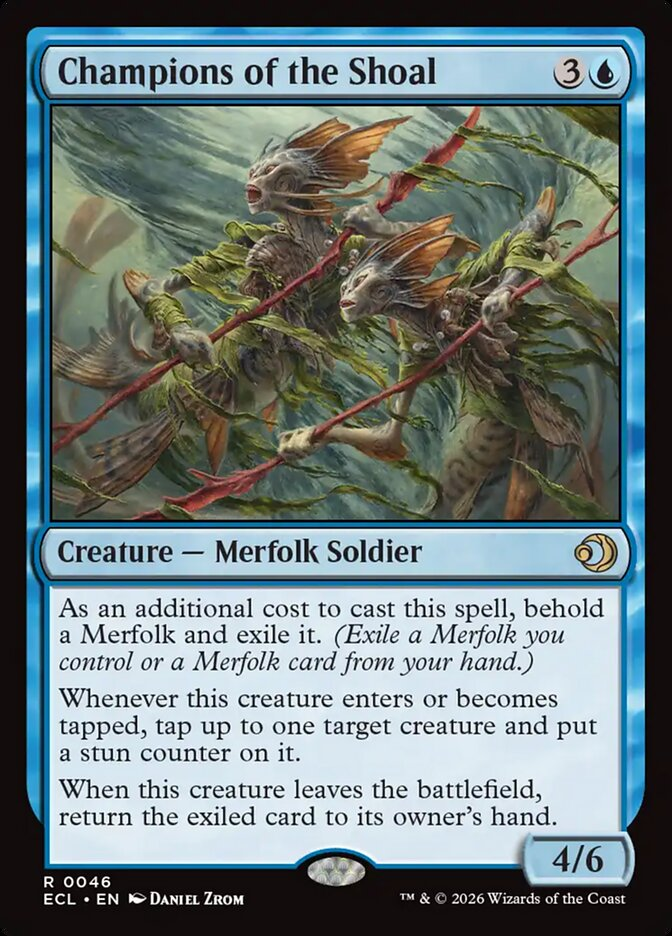 Výše jsem zmiňoval schopnost behold jako variaci na schopnosti "champion něco" z původního Lorwynu. Pětice karet se slovem champion v názvu odkazuje přesně na tuto schopnost. Zatímco v původní sadě jste museli championovat něco odpovídajícího typu na bojišti, zde díky beholdu můžete i kartu z ruky, nicméně stejně jako u klasické champion schopnosti se vám pak karta vrátí – zde ale vždy do ruky.