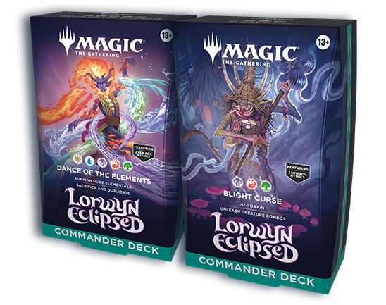 Poté, co chyběly u posledních Universes Beyond sad, se klasické Commandery v Lorwyn Eclipsed vrací. V každé krabici najdete: