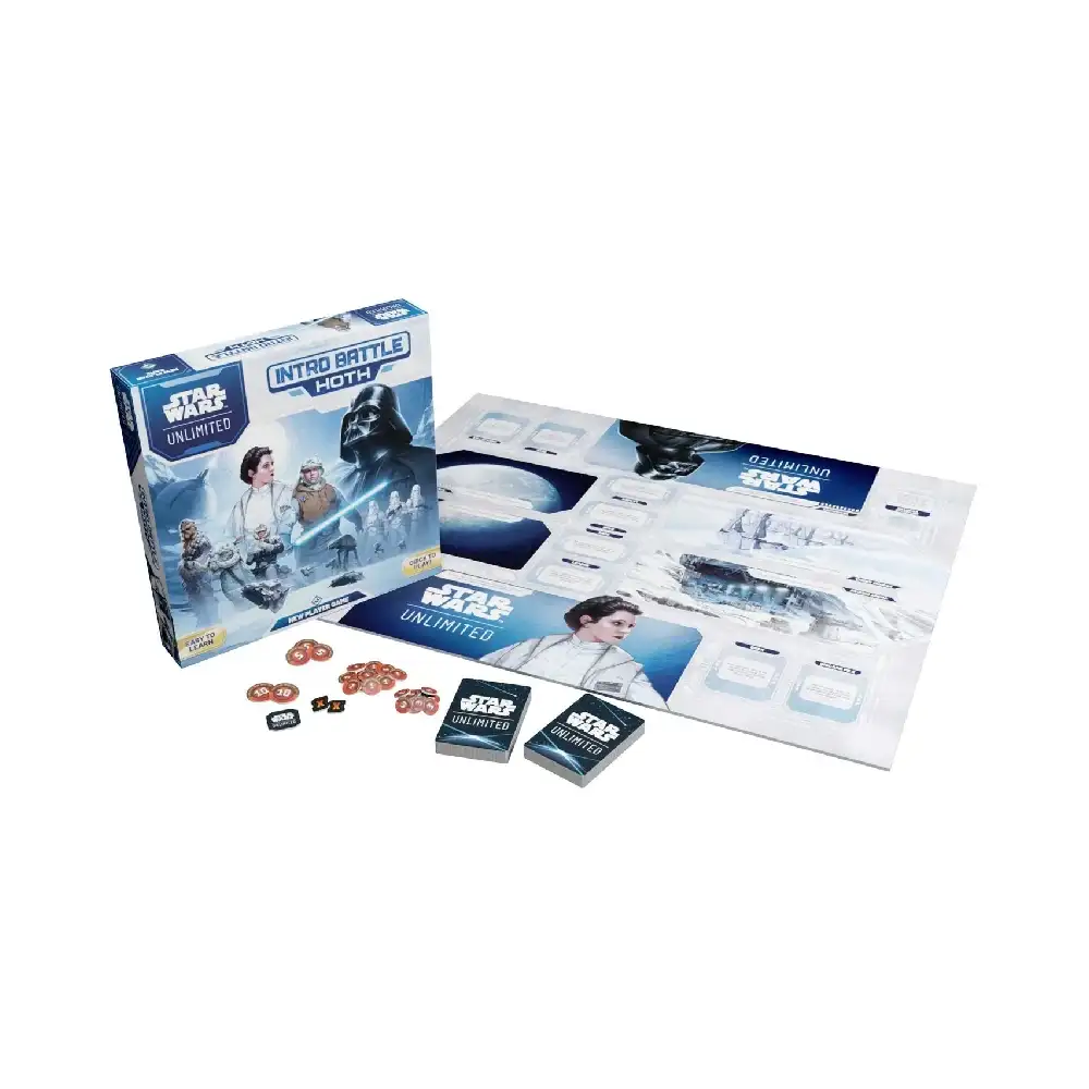 Star Wars: Unlimited – Intro Battle: Hoth je samostatná sada pro dva hráče a ideální vstup do sběratelské karetní hry Star Wars: Unlimited. V balení najdete dva hotové balíčky, všechny potřebné komponenty a pravidla, takže stačí rozbalit, vybrat si stranu konfliktu a pustit se do souboje o zničení soupeřovy základny.