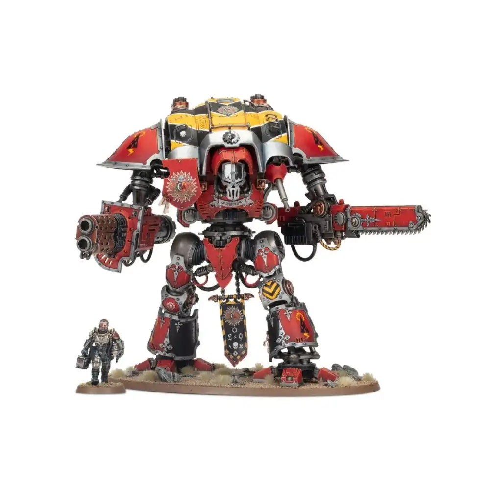 Knight Questoris je typ miniatury, která zaujme hned na první pohled. Masivní model s impozantní siluetou slouží jako středobod armády i skvělý projekt pro barvení – nabízí spoustu prostoru pro vlastní heraldiku, efekty počasí (weathering) i kreativní detailní práci.