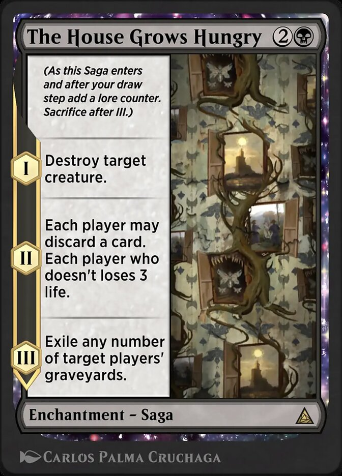 Než jsme se ovšem pustili do nových release, čekal nás, jako už tomu bývalo tradičně, Remastered set. Wizards of the Coast zahájili rok 2025 návratem na jeden z nejoblíbenějších planů vůbec. Innistrad Remastered byl koncipován stejně jako ostatní Remastered sady jako draftovatelná kompilace klíčových karet z celé historie innistradského bloku, doplněná o nové vizuální úpravy a sběratelské prvky. Velkou pozornost přitáhly zejména retro rámečky a speciální „movie poster“ alternativní artworky, které tematicky navazovaly na hororovou inspiraci světa Innistradu ve stylu šestákových biografů.