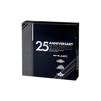 Experience the thrill of Beyblade X, the next generation of Beyblade stadiums, launchers, and tops. The Beyblade X 25th Anniversary Set includes 4 launchers and 4 Attack Type tops with Attack Type Blades: Dragoon Storm 4-60RA left-spin top, Storm Pegasus 3-70RA right-spin top, Victory Valkyrie 2-60RA right-spin top, and Dran Sword 3-60F Attack Type right-spin top. Launch right into battle or reconfigure the interchangeable blades, ratchets, and bits to build your perfect Beyblade top.
