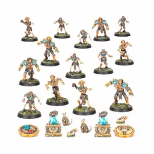 This multipart plastic kit builds a Tomb Kings team for use in games of Blood Bowl. The Linemen are the backbone of the team, while the Blitzers make use of their speed to perform headlong charges. Tomb Guardians are brutal bruisers, and Throwers are vital for securing the ball.