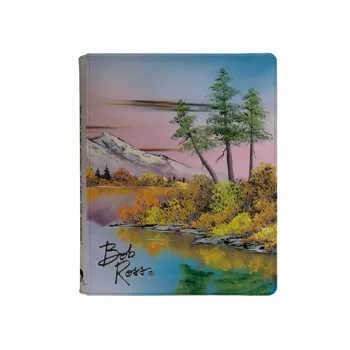 - Padded leatherette cover featuring a Bob Ross autumnal mountain lake scene