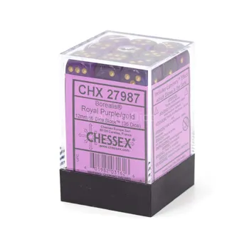 Chessex 12mm d6 Dice Block – Borealis Royal Purple/gold Luminary (36 dice)
