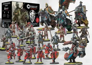 This Hundred Kingdom Cohort set includes a Mounted Noble Lord, 4 Longbowmen, 3 Household Knights, 8 of the Men at Arms (new sculpt), 6 Steel Legion and 4 Militia. 26 models in all along with all bases and stands, Command Cards, Assembly Instructions, Quick Start Guide and Welcome Guide.