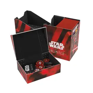 The Soft Crate is the durable all-in-one solution for Star Wars™: Unlimited players. This full-color printed deck box is packed with ingenious features. It protects a full double-sleeved deck of 60 cards and includes an innovative token box! This token box has a smart click-lock mechanism to keep all tokens safely stored. Once opened, the lid stays upright for convenient access.