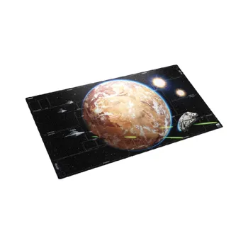 This table-size, premium quality, full color printed, and officially licensed Star Wars™: Unlimited Battle Zone Game Mat is a must-have accessory for every fan of the TWIN SUNS format! To elevate the high-quality print of the iconic TWIN SUNS design, the mat is equipped with an astonishing shiny surface and premium stitched edges. Ideal for 4 players, this softly cushioned game mat comes with designated card and play zones and provides a safe, extra-large environment for cards and all accessories needed. Each mat is outfitted with an ultrafine surface as well as an anti-slip back side that keeps it safely in place during gameplay.