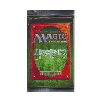 Homelands booster pack contains 8 cards. Notable cards are Digeridoo, Merchant Scroll, Baron Sengir