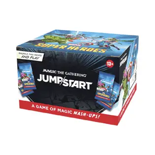 The game of chaotic combinations gets mashed up with the Marvel Universe! Just grab two packs, shuffle them together, and you're ready to battle. Each pack includes all the lands you need and has 1 of 51 possible Marvel Super Heroes themes; combine two to build your dream super team of Heroes and Villains and unleash their earthshaking abilities. With instant deck building and delightful theme combos, Jumpstart is great for a quick game or fun way to teach friends and family to play Magic.