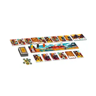 In MESOS (Czech Edition), you are the leader of an ancient tribe, and as such, your role is to nurture the growth of your tribe by adding new members, ensuring its sustenance, constructing buildings, and addressing unfolding events. Each round, you must place your totem pawn on the offer track, then following the pawns' order on the track, you will acquire character or building cards and add them to your tribe. Each card has specific effects and may earn prestige points (PP) as you construct specialized buildings and prepare wisely for the events you will face.