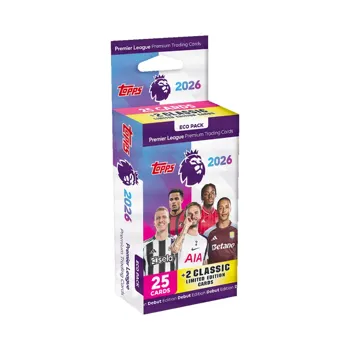 Topps proudly presents the Premier League 2026 – Debut Edition, a thrilling new trading card collection featuring autograph cards, rare parallels, ultra-rare Diamond Rookies, and exclusive limited editions. The Eco Pack includes 25 cards plus 2 random Classic Limited Edition cards, offering great value for collectors looking to expand their collection. It’s perfect for fans seeking the excitement of discovering rare and exclusive cards at an affordable price.