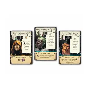 Soumrak (Czech Edition of Evenfall) is a card-driven, engine-building game with both novel and familiar mechanisms for 1 to 4 players. Manage your resources, execute your actions in an efficient order, and discover card and action synergies that generate victory points. The game ends after three rounds, then the player with the most points wins.