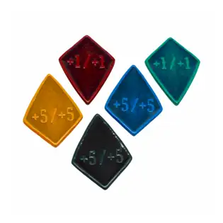 - 5 +1/+1 (+5/+5 on the other side) dragonscale-themed metal counters