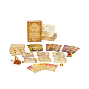 Dahlgaard's Gifts is an add-on pack for Trickerion – Legends of Illusion, with 90 Magician Power cards, the Duel of the Magicians two player enhancement pack, 8 additional Special Assignment Cards, 4 Magician Meeples, a large acrylic Trickerion Stone turn marker, and 25 additional Trickerion Shards.
