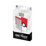 Ultra Pro One-Touch Edge Poké Ball Magnetic Card Holder features a printed Poké Ball design, perfect for showcasing your favorite Pokémon TCG cards. This model can hold standard size Pokémon cards (2 ⅝ in. x 3 ¾ in.) up to 35pt in thickness.