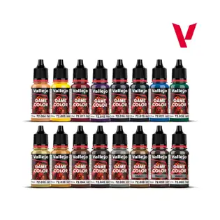 The Advanced set contains a selection of 16 colors, 3 of them metallic, and complements the 72.299 Introduction set. The colors have been carefully selected by Vallejo specialists so that you can start practicing more advanced painting techniques.