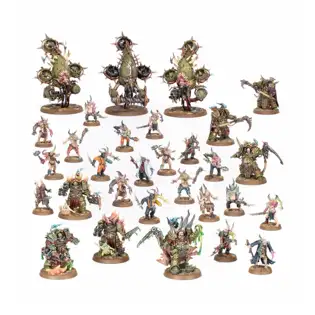 This packed boxed set is ideal for starting a new Death Guard collection – or expanding an existing army – to unleash in games of Warhammer 40,000, and save money compared to buying the kits separately. Led by Lord Felthius – a Lord of Contagion – and his Blightlord Terminator bodyguards, the bulk of the force is composed of Poxwalkers to flood the battlefield, claim vital objectives, and soak up enemy firepower. A trio of Deathshroud Terminators are ready to take on tough targets, and three Foetid Bloat-drones support the force with a boost of speed.