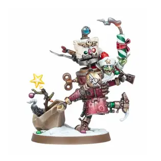 This multipart plastic kit builds Da Red Gobbo’s Tinboy, a mechanical construction for your Orks armies in games of Warhammer 40,000. He can be seen taking a cheeky peek out of the hatch, ready to deliver some explosive holiday cheer, dragging a sack of "gifts" behind him.