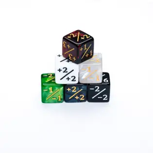 Mramorovaná zelená šestistěnná kostka na počítání -1/-1 counterů.