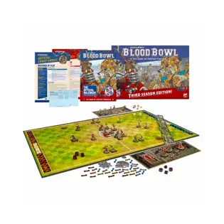 - 1x 200stránková pevná kniha Blood Bowl: The Official Rulebook – Third Season Edition! vysvětlující pravidla hry, jak vést ligu a rozvíjet svůj tým, plus soupisky týmů a profily hráčů