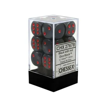 Chessex sada 6-stěnných kostek 16mm –Velvet Black/red (12 ks)