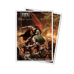 105 obalů na karty standardní velikosti s motivem ze hry Doom: The Dark Ages.