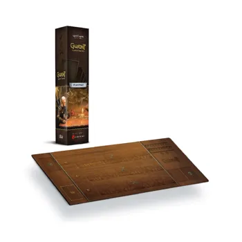 Tato oficiálně licencovaná herní podložka Gwint, inspirovaná hrubým dřevem stolů a trámů, jaké najdete v temerských a redaňských krčmách – v místech, kde se pije, zpívá a hraje o čest i o mince.