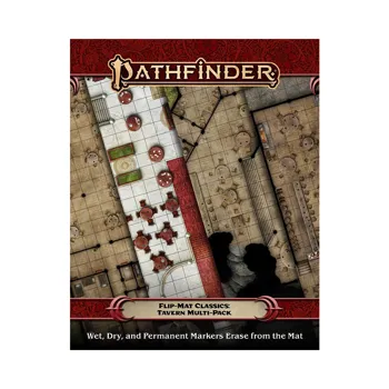 Dřív nebo později každá parta dobrodruhů skončí v hospodě! Pathfinder Flip-Mat Classics přináší okamžitě použitelné a bohatě detailní fantasy lokace pro zaneprázdněné dungeon mastery, vybrané z těch nejužitečnějších a nejoblíbenějších map celé řady Flip-Mat. Ať už si hrdinové chtějí jen odpočinout, domluvit schůzku se spojencem či mecenášem, najít další práci, nebo se stanou obětí přepadení přímo v centru města, Pathfinder Flip-Mat: Classic Tavern Multi-Pack vás nenechá na holičkách - nabízí celkem čtyři různé lokace.