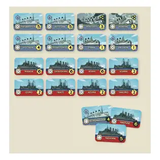 - 50 žetonů lodí (22 japonských a 28 ruských)