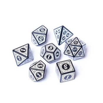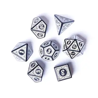 Sada 7 vícestěnných kostek - Gotické Bílé