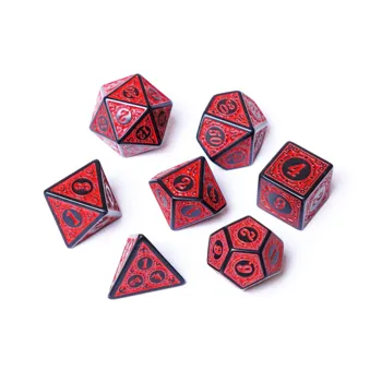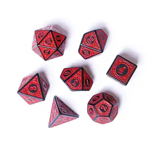 Sada sedmi kostek obsahující d4, d6, d8, d10, d12, d20, a kostku na procenta.