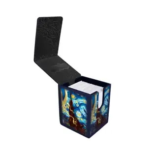 Ponořte se do ohromujícího světa Jasmine Becket-Griffith, proslulé svým surrealistickým uměním, které spojuje známé s fantastickým. Tato prémiová krabička nabízí živé, plnobarevné umění Becket-Griffithiny ikonické postavy Alice uvnitř milovaného mistrovského díla Vincenta van Gogha „Hvězdná noc“ na povrchu z koženky. Silné magnetické zavírání udrží vaše karty bezpečně uvnitř a dvojité výřezy pro palce umožňují snadný přístup k balíčku. Uložte a chraňte až 100 standardních hracích karet v dvojitých obalech. Víko lze odejmout z obou stran krabičky pro snadný přístup k vašemu balíčku.