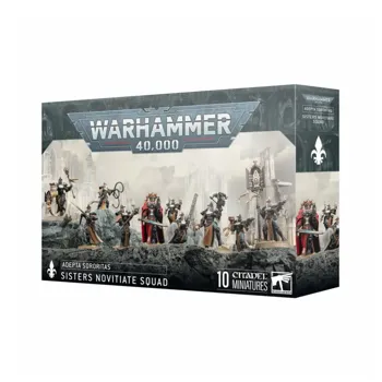 Tato vícečástová plastová sada umožňuje sestavit 10 Sisters Novitiate, nezkušených, ale smrtících bojovnic pro vaše armády Adepta Sororitas ve hrách Warhammer 40,000. Jsou ideální pro obsazování a držení cílů a představují zásadní posilu pro Sisters of Battle. Sada je vysoce přizpůsobitelná – můžete si vybrat buď autopušky, nebo více na boj zblízka zaměřené meče a pistole. Vedené noviciátní nadřízenou v plné energetické zbroji zasazují tvrdší údery, než by vaši protivníci čekali, a otevírají nové taktické možnosti pro vaše armády Adepta Sororitas.