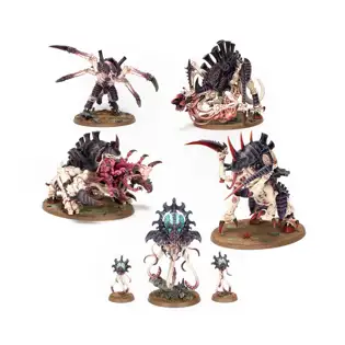 Tato krabice obsahuje díly na sestavení 7 více-dílných plastových miniatur Tyranidů: