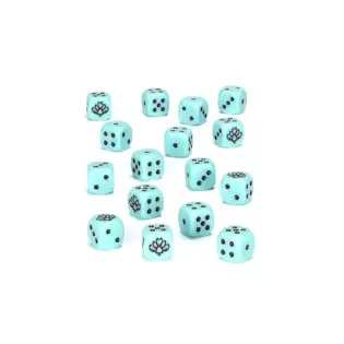 - Jsou vyrobené z matného tyrkysového akrylu s hnědými značkami a na straně s číslem 6 je vyobrazen ikonický symbol Sylvaneth.